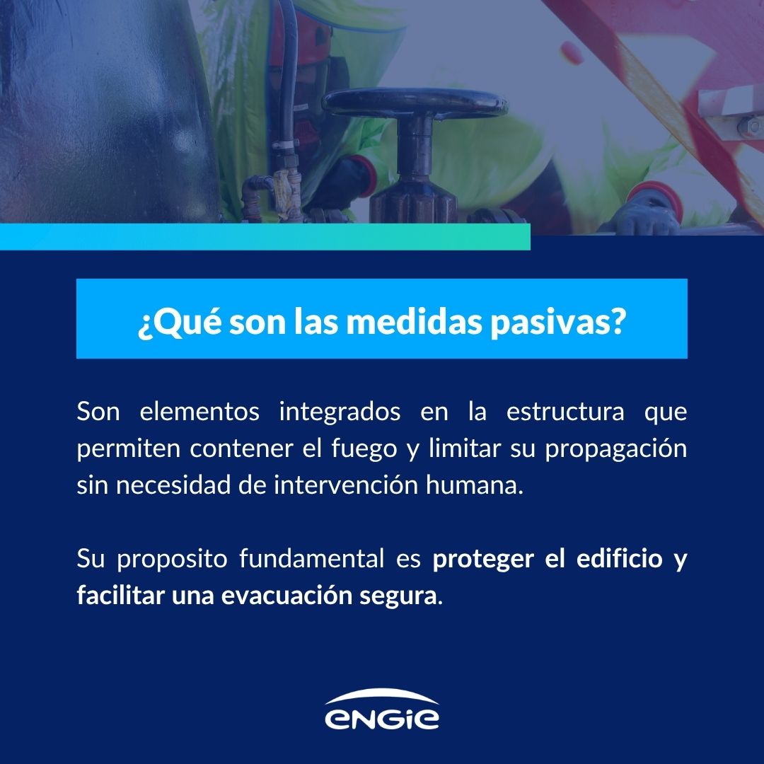 Este grupo de acciones incluyen todas aquellas destinadas a prevenir o limitar la propagación del fuego y gases sin necesidad de intervención humana. Su objetivo es contener el fuego, proteger la estructura del edificio y facilitar la evacuación segura de las personas. Algunas de las más comunes son: